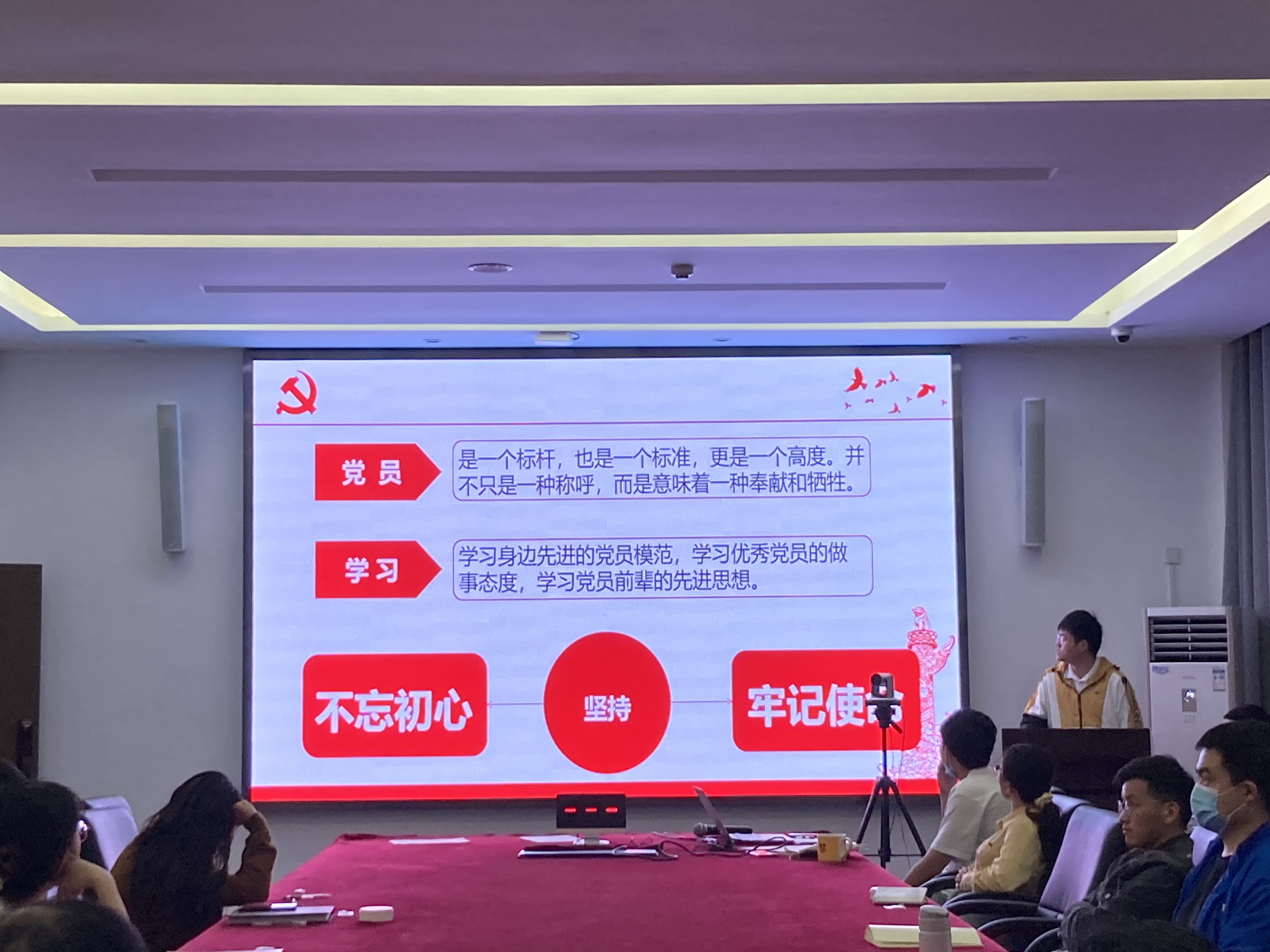 党史学习教育“微党课”环节,由支部各党小组分工合作,结合建党以来的重大事件和时间节点,选出了“中共五大”、“人民至上”、“不忘初心,牢记使命做合格党员”等主题进行解读,做到“有内容,有思考”,强调了党史学习教育的重要性和必要性,从党史中吸取经验教训,从党史讲合格党员标准,从党史发展看新形势下的党员要求。