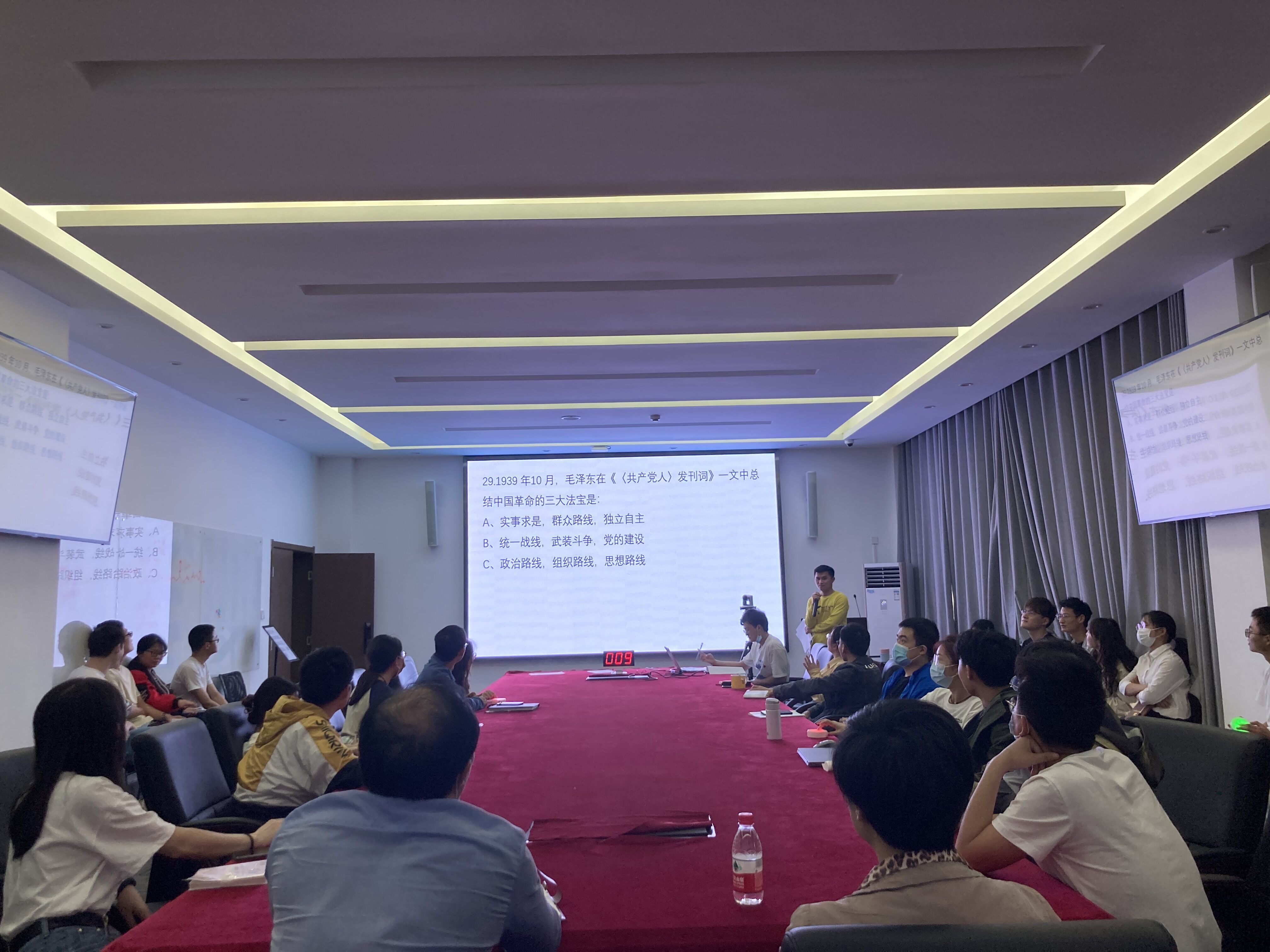 党史知识竞赛环节,全体党员按小组进行抢答。充分运用自己所学知识,积极思考、踊跃参与,现场气氛热烈。