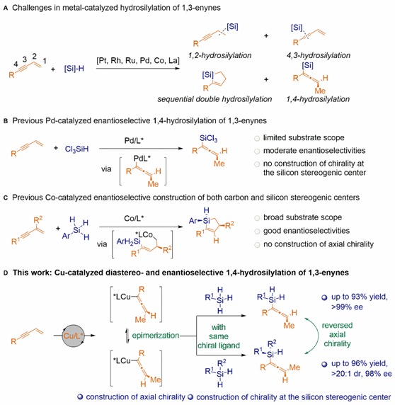 图1 1,3-烯炔的选择性催化硅氢化反应