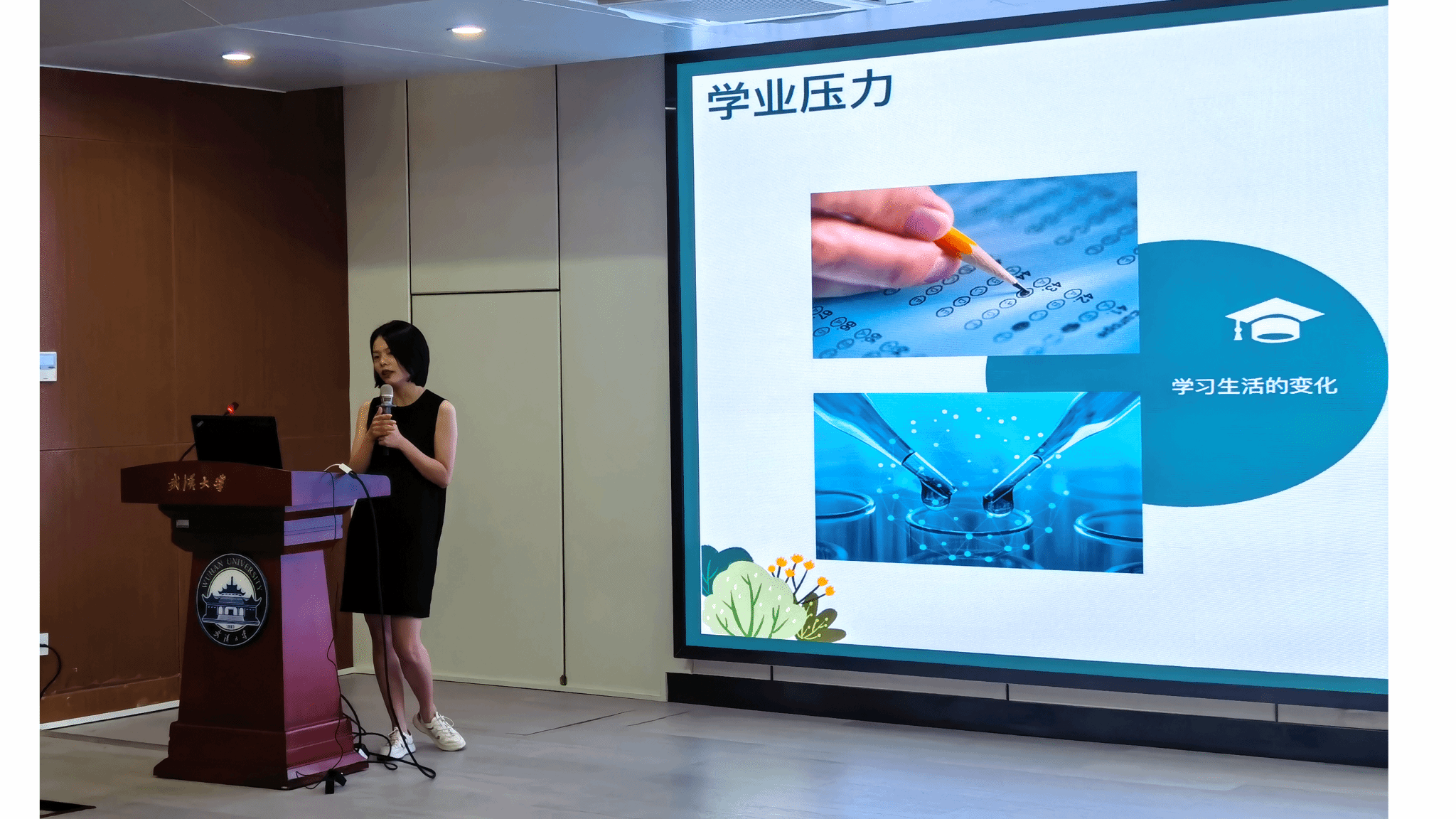 “研途漫漫”,充满了机遇与挑战。“在任何环境中都要尝试从积极乐观的角度看问题……”校心理健康教育中心副主任章吉老师紧扣研究生心理健康这个话题,从学业压力、导学关系、朋辈支持和找寻自我四个方面为新生们介绍了研究生过程中可能会出现的挑战和机遇,包括入睡和饮食问题、如何处理与导师的关系问题以及找寻自我中遇到的“从众还是从己”的问题。