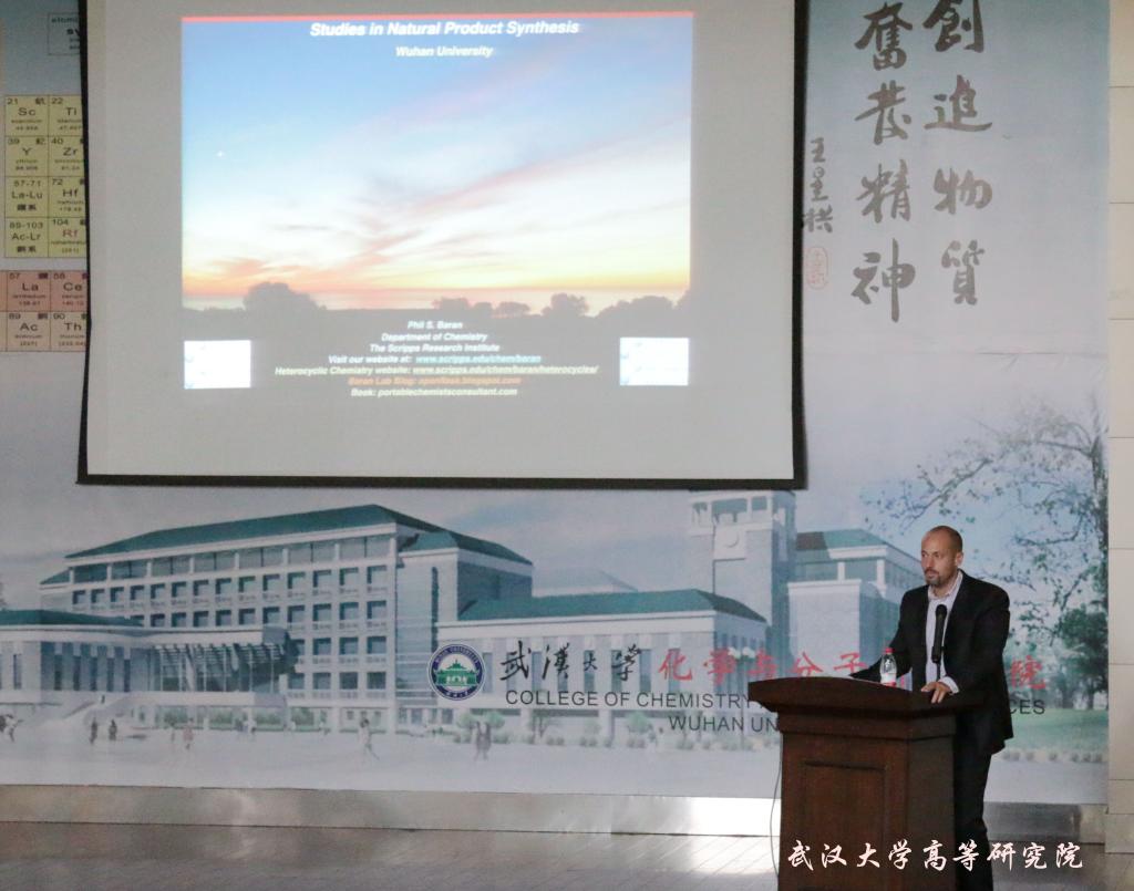 报告结束后,5g影院 副院长、化学与分子科学学院雷爱文教授分别为Jin-Quan Yu教授和Phil S. Baran教授授予了“长江学术论坛”纪念牌,并合影留念。当天下午,两位教授与化院从事有机化学研究的各个课题组进行了深入的学术交流和探讨。