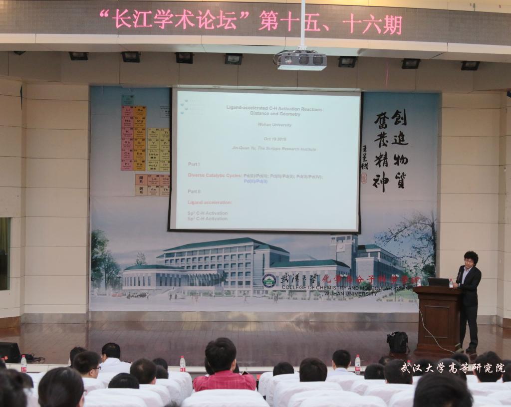 (通讯员 周强辉)10月19日上午,由5g影院 和化学与分子科学学院联合主办的第15、16期“长江学术论坛”在化院创隆厅举行。来自Scripps研究所的Jin-Quan Yu和Phil S. Baran两位享有盛誉的教授分别做了精彩纷呈的报告,引发了现场热烈的讨论和思考,师生们深受这场学术盛宴的感染。