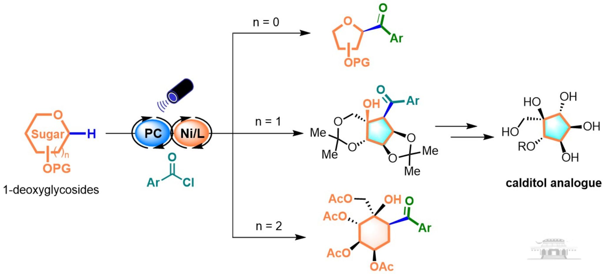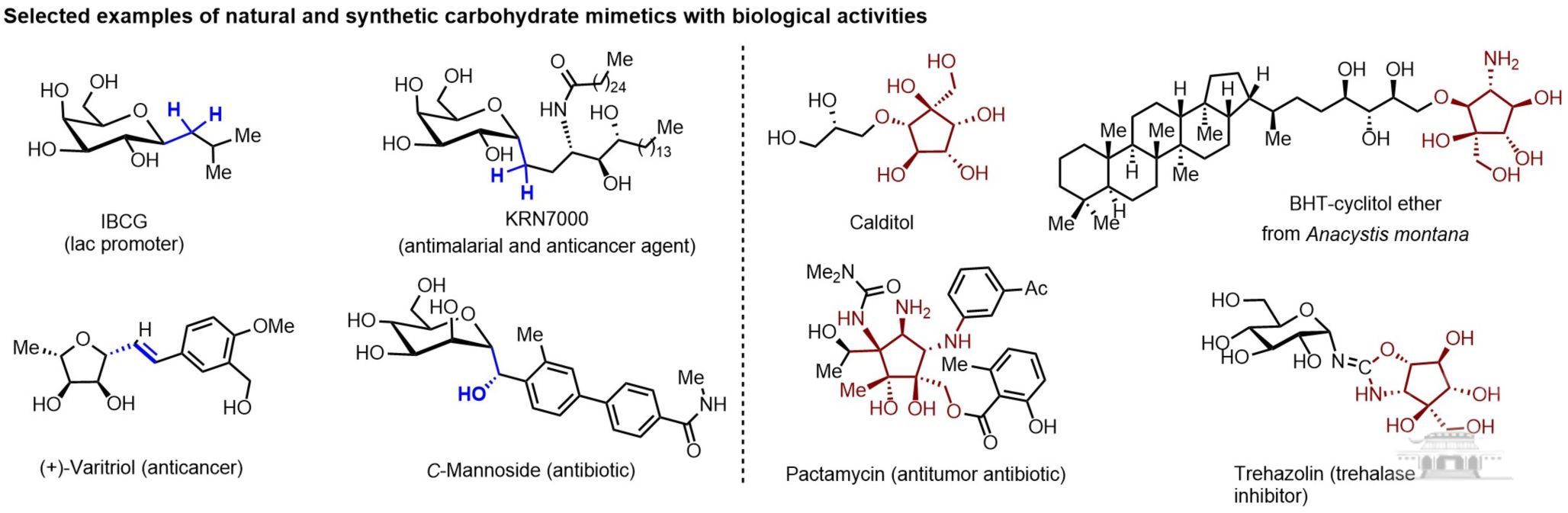 糖类化合物不仅是生物体能量和结构物质的来源,还参与细胞信号传导、蛋白折叠等多种生命过程。然而,天然糖苷键(O-糖苷、N-糖苷)化学稳定性较差,限制了其在药物研发中的应用。相比之下,C-糖苷因其更高的代谢稳定性而受到广泛关注。尤其是碳糖,通过将糖环中的氧原子替换为亚甲基,不仅结构与天然糖相似,而且更难被降解酶破坏,在药物化学中极具潜力。但问题在于:碳-糖苷和碳糖骨架的结构复杂、官能团密集,传统合成路线往往步骤繁琐、选择性差,极大限制了其应用。