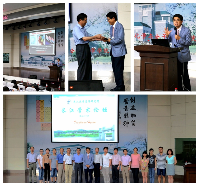 (通讯员:林毅、王佳佳)6月14日下午,国际纳米医药材料领域的国际顶尖专家和领军人物、韩国首尔国立大学教授、韩国翰林院院士、现担任韩国总统朴槿惠的科学顾问、化学领域顶级期刊Journal of American Chemical Society副主编玄泽焕(TaeghwanHyeon)教授受邀作客长江学术论坛第三十二讲,为全校师生带来一场题为Chemistry for Nano, and Nano for Medicine & Energy的精彩报告。生物医学分析化学教育部重点实验室主任、5g影院 、化学与分子科学学院庞代文教授主持论坛,5g影院 院长朱玉贤院士授纪念牌。相关专业师生两百余人认真听取了报告并参与了学术讨论。