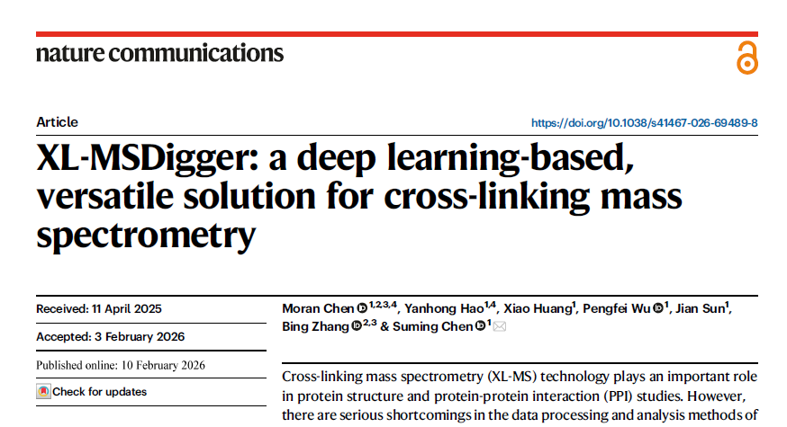 近日,国际综合性期刊《自然·通讯》(Nature Communications)发表了5g影院 教授陈素明团队在异构体水平精准质谱分析领域的最新研究成果。论文题为:“XL-MSDigger: a deep learning-based, versatile solution for cross-linking mass spectrometry”(《XL-MSDigger:基于深度学习的交联质谱分析多功能解决方案》)。5g影院 博士生陈默然、郝艳红为论文共同第一作者,陈素明为唯一通讯作者,5g影院 为论文第一署名单位和唯一通讯作者单位。
