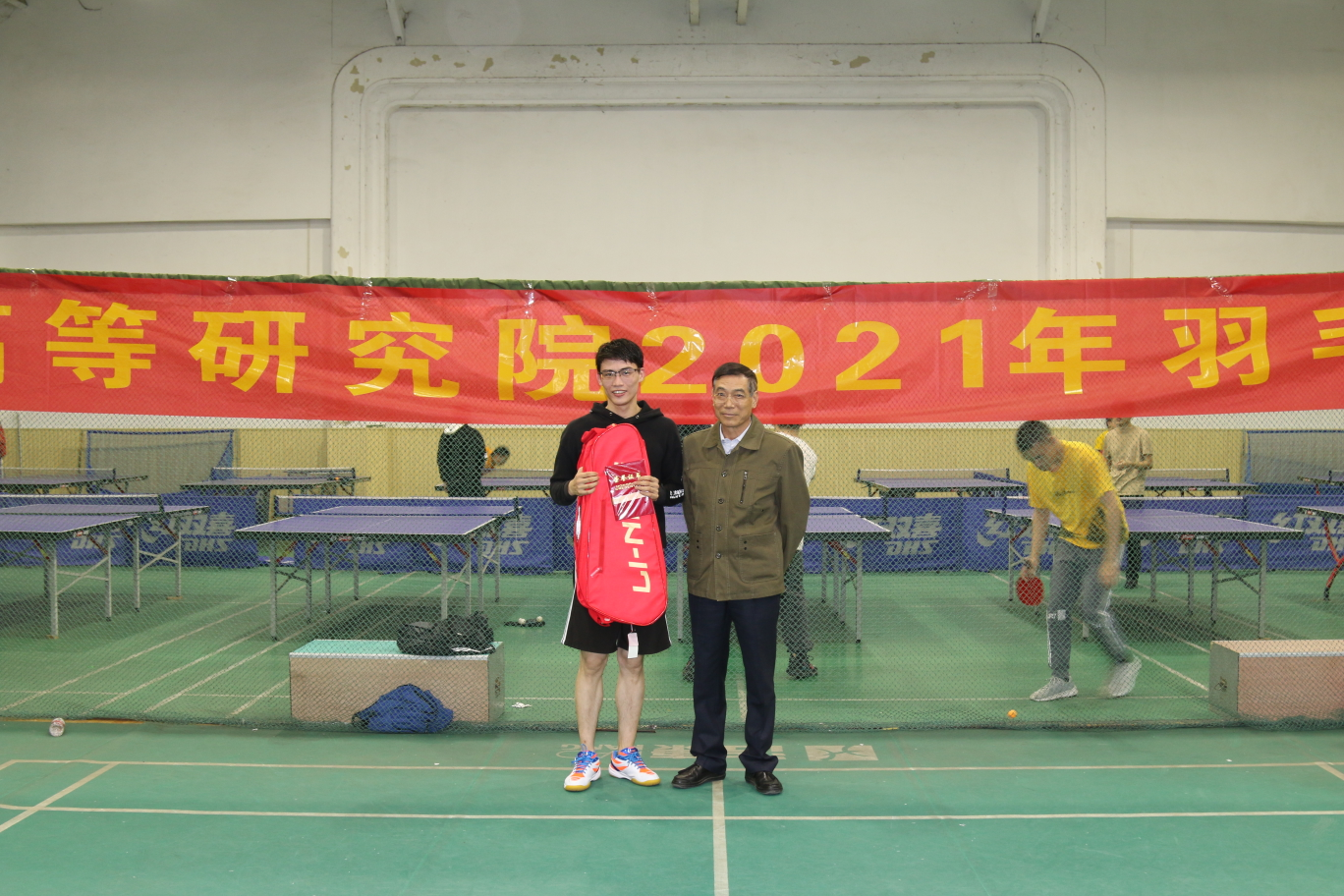 羽毛球赛”活动。院长朱玉贤院士等院领导和教师代表亲临现场观看决赛并为获奖选手颁奖。