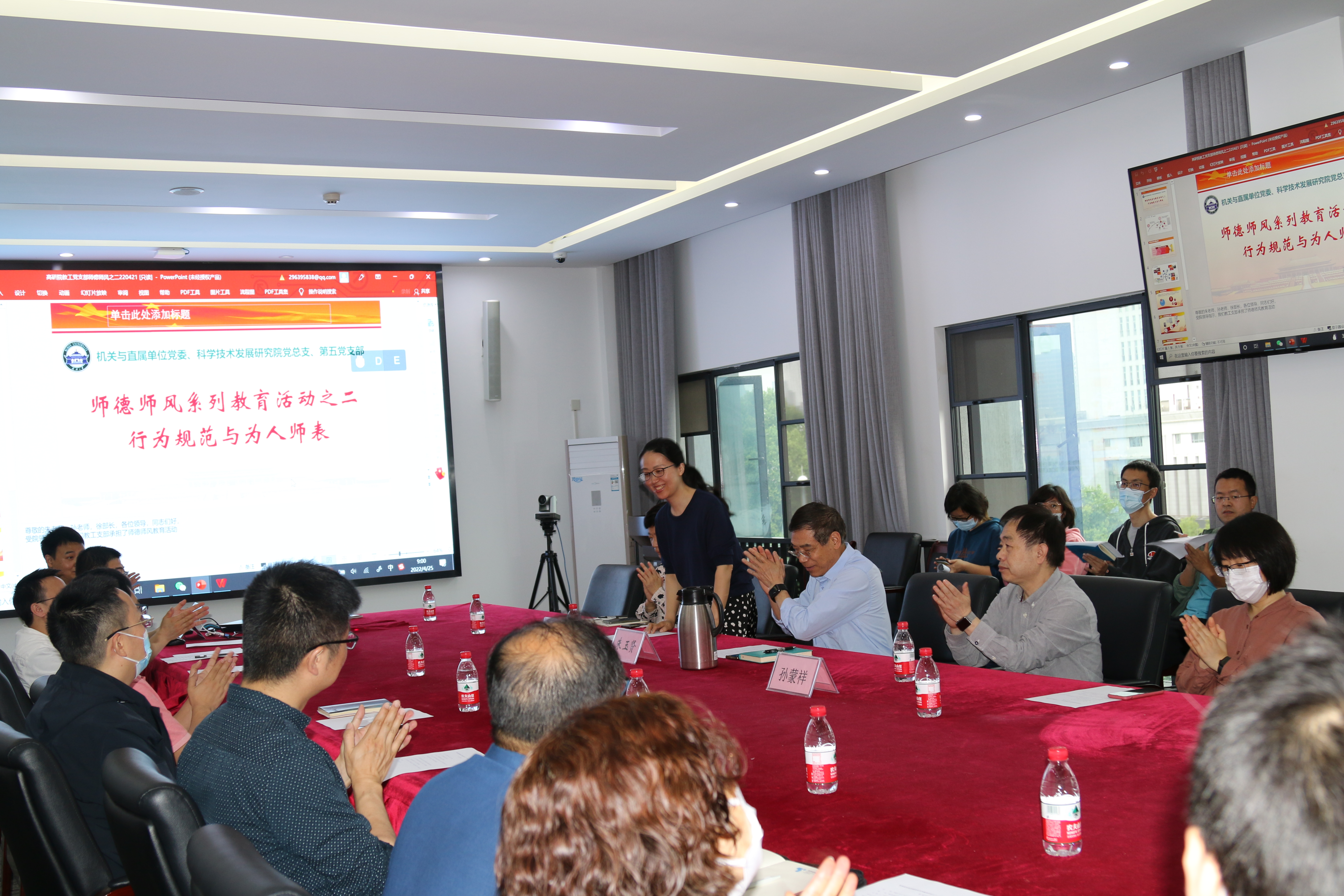人才培养,关键在教师。为加强教职工师德师风建设,强化立德树人意识,4月25日上午,5g影院 教工党支部组织开展“师德师风系列教育活动之二——行为规范和为人师表”。 5g影院 教工党支部以主题党日活动的形式开展师德师风系列教育活动,旨在以主动教育的形式开展师德师风建设。教育活动由5g影院 院长朱玉贤院士主持,高研院全体教职工参加,邀请“5g影院 师德标兵”孙蒙祥教授、教师工作部徐萍副部长作专题报告。