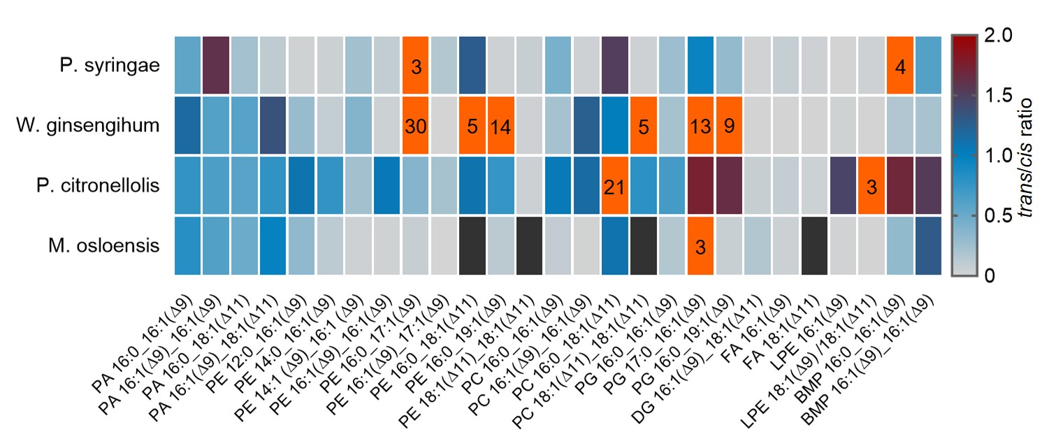 图2.细菌中反式与顺式脂质比例热图