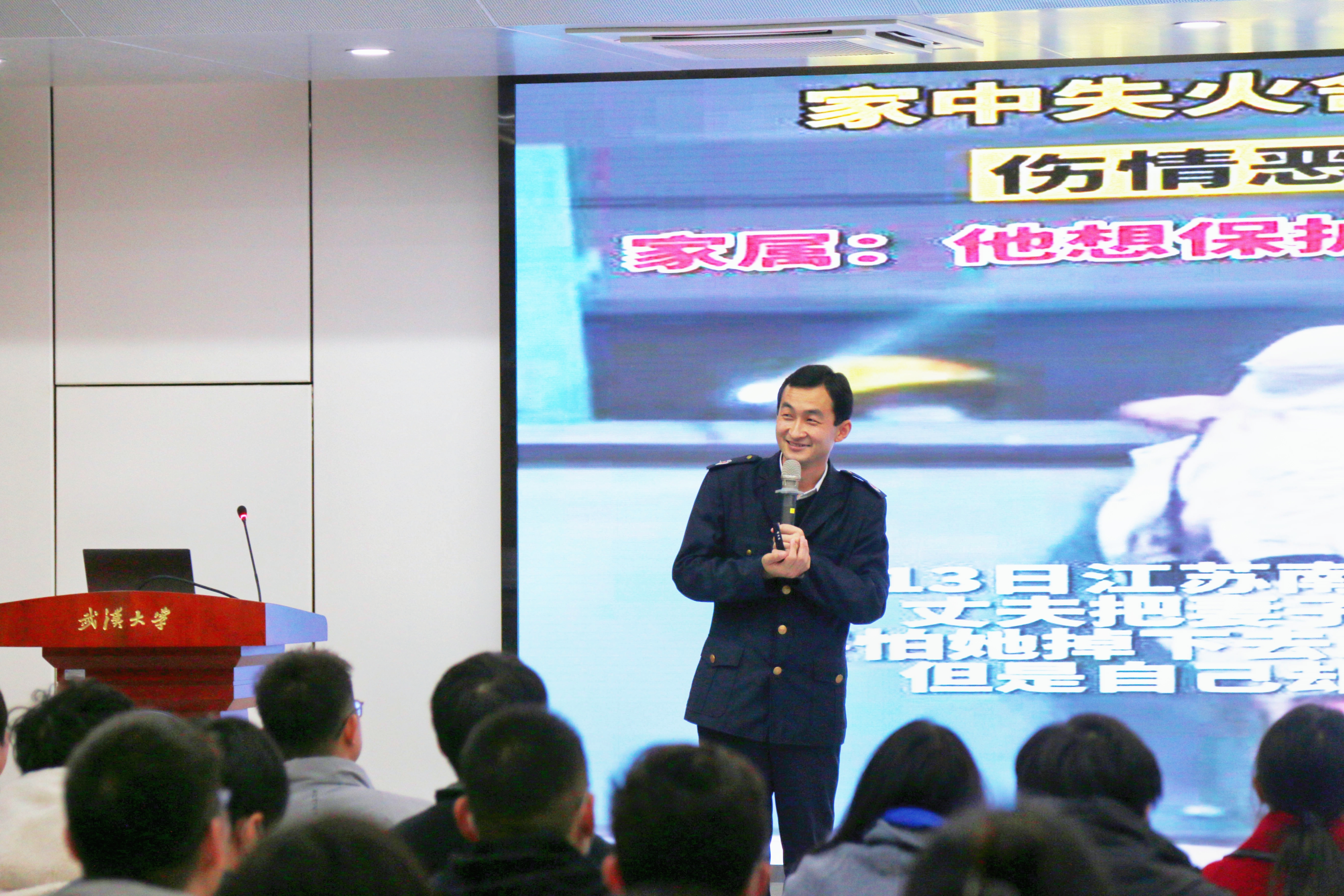 “隐患险于明火,防范胜于救灾。”李朝见教员以近年的安全事故为例,用幽默风趣的方式介绍了火灾的分类、灭火器的种类及使用方法;他讲解了宿舍安全用电防火常识,并现场示范,指导同学们如何规范使用灭火毯。