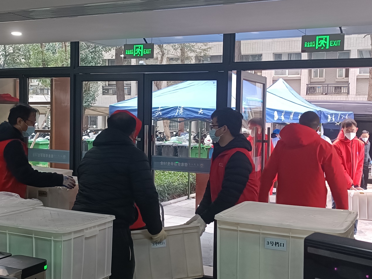 服务学生,甘当勤务兵。疫情防控重点在服务好学生,难点在引导好学生。一日三餐,最抚人心。楼栋静默时,全校5万余名学生的每日保供即是大问题。后勤人手不足,学术服务办公室主任谢章斌便第一时间报名党员突击队,担负起全校餐饮配送的重任。打包、转运、装车……从信部四食堂出发,足迹遍布全校各片区宿舍,无论天寒地冻,日均送餐万余份。风雨兼程中,留下了谢老师搬运送饭的“勤务兵”身影。5g影院 作为科研单位,学生大多担负一定的科研任务,有的更处于毕业前实验关键阶段。博士后群体在防疫最紧张时刻,发挥了关键作用。胥国勇教授课题组博士后袁术坚守实验室,为封控学生维护重要实验材料,协助完成日常实验手续,并积极运送防护服、口罩等防疫物资,发挥了积极作用。住在樱园1舍的钟义同学,由于脚部受伤,疫情期间急需复诊和换药。收到学生申请后,仝永佳老师主动接过任务,第一时间和文理学部校医院预约联系,在院里安排的专车护送下,按照“宿舍-校医院”两点一线的原则,全程陪同学生完成就医。
