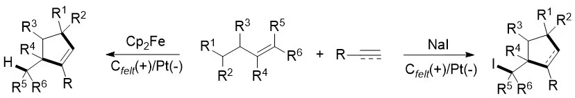 图5电化学诱导分子间选择性(3+2)环化构建环戊烯衍生物