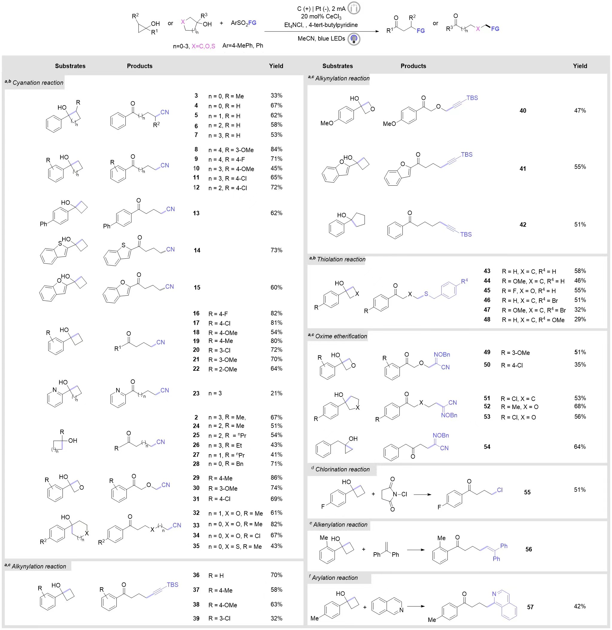 该方法在温和条件下不仅实现了不同环张力的开环,并且能够实现多种多样的官能团化,从而大大的拓展了该方法的实用性(图3)。
