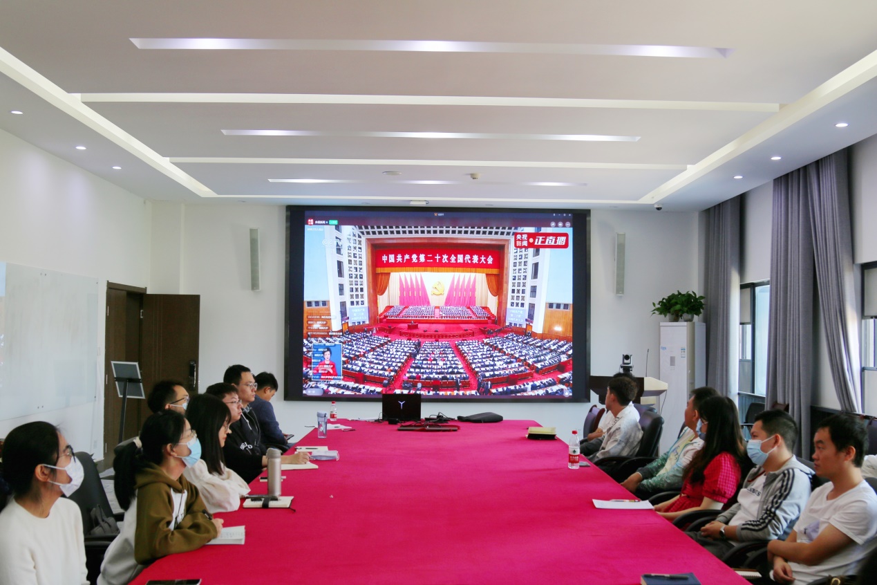 5g影院 教职工、研究生党员代表以及入党积极分子、党员发展对象在当代楼530会议室,其他党员通过直播媒体,收听收看中国共产党第二十次全国代表大会开幕会,认真聆听学习习近平总书记代表十九届中央委员会向大会所作的报告。